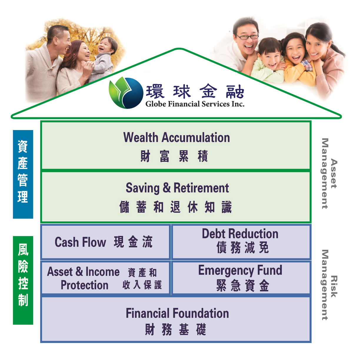 資產管理,又稱投資管理,是一項針對證券及資產的金融服務,以投資者利益出發並達致投資目標。投資管理包含了幾個元素,例如金融分析、資產篩選、投資標地篩選、計劃實現及長遠投資管理。投資和延稅免稅管理在行業中有著非常重要的作用,可以有效地幫助客戶得到資產增值的最大化。我們的資產管理包括各類參與式分紅計劃,保本基金(segregated fund),小型企業(small business)輕鬆提取利潤計劃等,還有普通投資賬號(open),高利息賬號(High interest savings account),RRSP, RESP, TFSA, Estate Transfer Strategy等各類註冊投資以及非註冊投資分隔式基金項目等。
